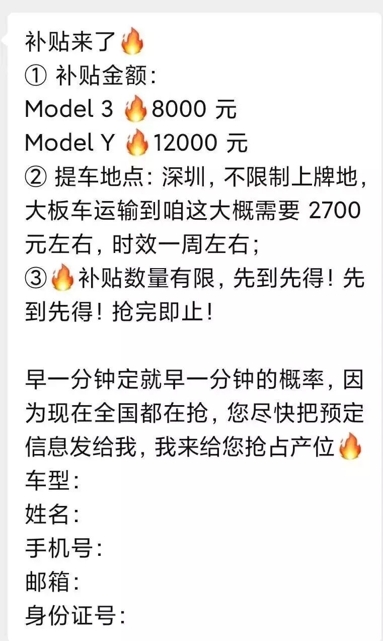 蔚來宣布全係降價3萬元後,特斯拉也坐不住了,經銷商聲稱“深圳買特斯拉最高補貼12000,全國各地客戶都可以提車。”