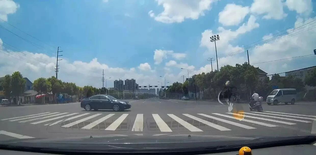 即便是綠燈狀態,也要在路口減速提前觀察,防止行人或電瓶車突然從左手邊的盲區中衝出來,如果不提前減速事故會完全無法避免。