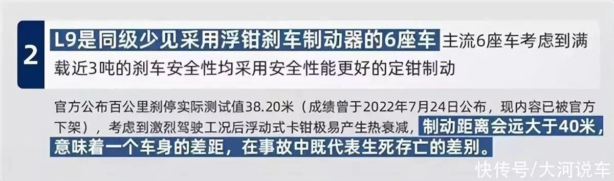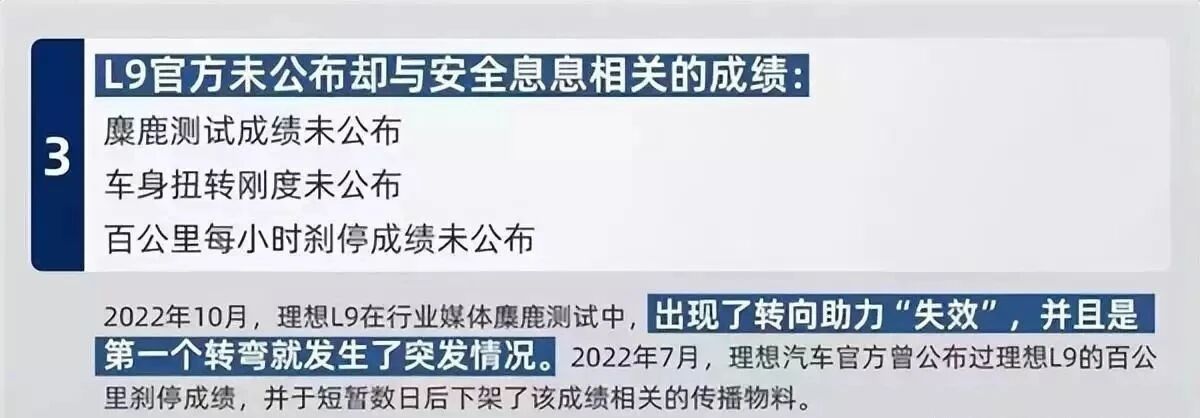 網傳:L9官方並未公布與安全息息相關的成績,包括麋鹿測試、車身扭轉剛度、百公裏刹停成績。