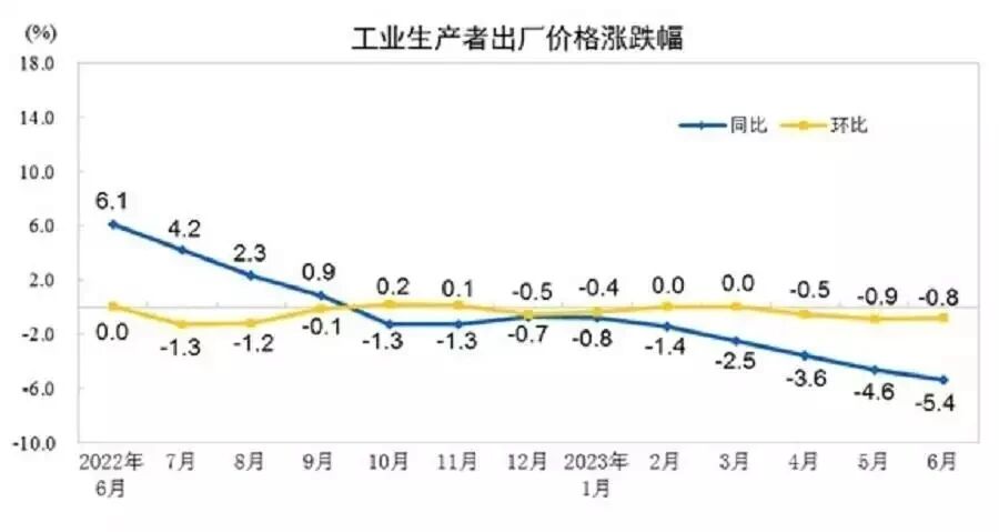 國家統計局公布的最新數據顯示,全國工業生產者出廠價格指數(PPI)持續下行,今年4-6月分別同比下降3.6%、4.6%、5.4%。其中,6月份的表現已接近曆史最低水平,創下自2015年12月以來的最大降幅。