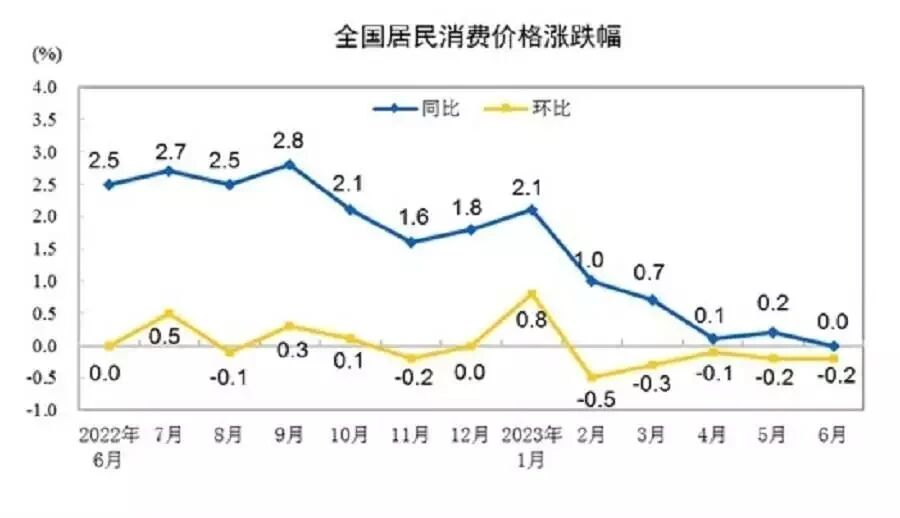 同樣是4至6月,全國居民消費價格(CPI)同比分別增長0.1%、0.2%、0.0%。其中,6月份的表現為2021年3月以來的最低值,引發市場通縮擔憂。