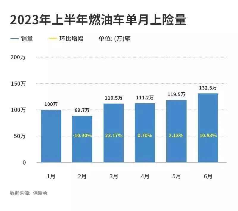新能源汽車呈爆發式增長後,燃油車被認為即將走向終點。“很快被替代”“燃油車即將被淘汰”等聲音不絕於耳。統計2023年上半年的上險量數據後可以發現,燃油車的銷量並未被像唱衰的那樣慘淡,在汽車市場增速放緩的背景下,銷量同比僅下降了6%。