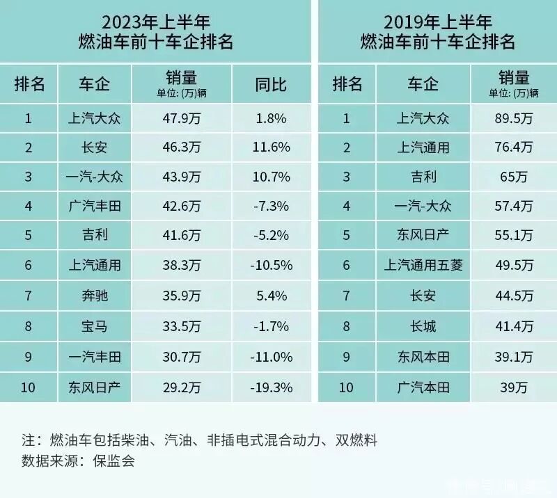 今年上半年,奔馳、寶馬燃油車銷量均突破三十萬輛,進入銷量前十榜單,一舉超越性價比較高的一汽豐田和東風日產。