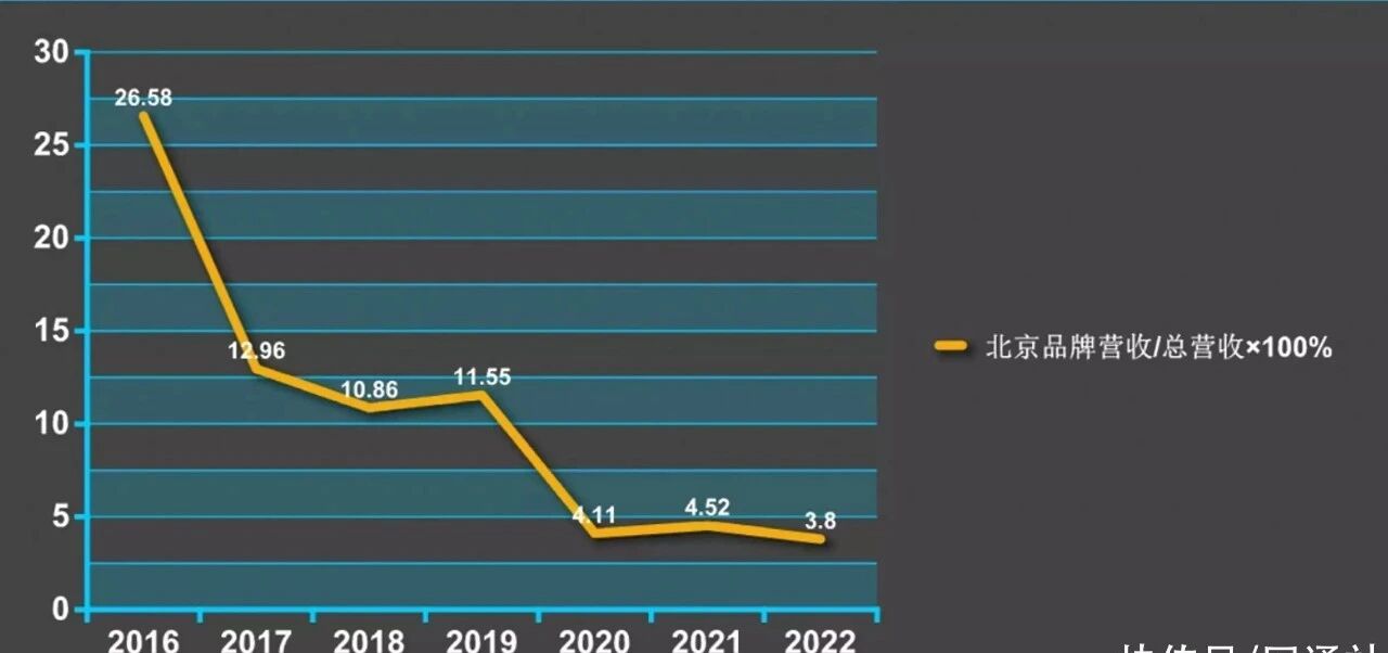 逐年遞減,2022年北京品牌貢獻隻占總營收3.8%