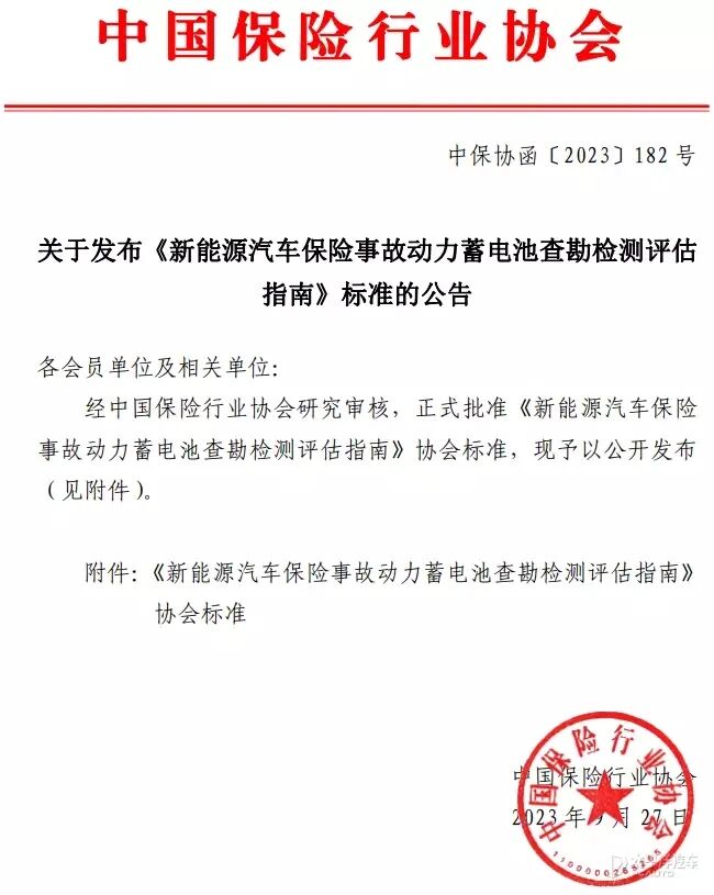 【太平洋汽車 行業頻道】一直以來,很多新能源汽車的車主都有類似的疑惑:萬一自己愛車的動力電池遭受損傷了,該如何修複與更換?又該如何進行理賠操作?這個問題現在終於有了權威解答:近日,中國保險行業協會在北京發布《新能源汽車保險事故動力蓄電池查勘檢測評估指南》標準。該標準聚焦解決新能源汽車動力蓄電池保險理賠中的主要問題,規範新能源汽車發生保險事故時對動力蓄電池的查勘、檢測與損傷評估,是助力新能源汽車健康發展的重要舉措,是運用標準化手段全麵強化行業自律的具體體現。