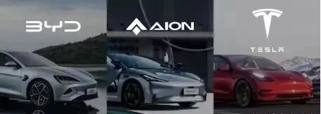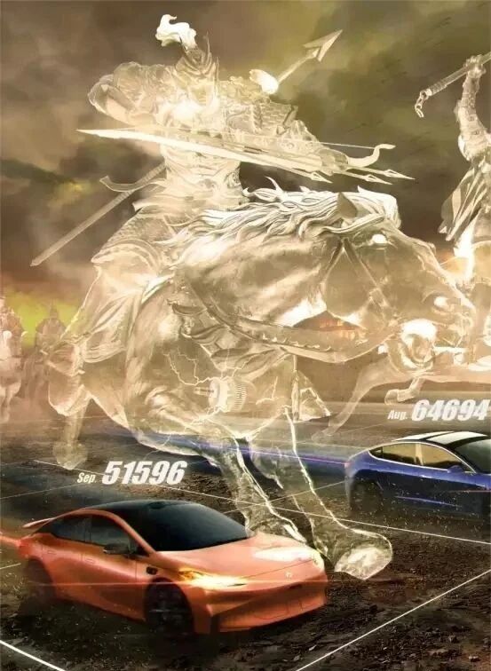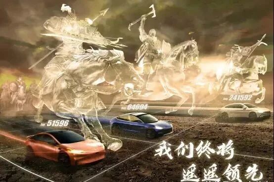 武將下方的三款車型揭露了他們的身份,從右到左分別是比亞迪、特斯拉和廣汽埃安。他們聯手開創了“新能源BAT格局”,是全球僅有的月銷5萬以上的新能源車企。