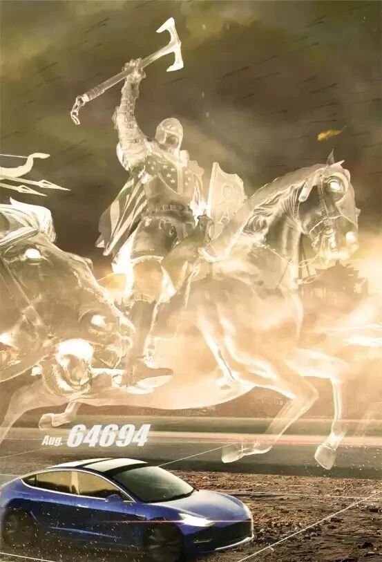 中間的白人騎士身上有不少美國元素,右手高舉的T型戰斧形似特斯拉的品牌Logo。雖然是美國的新能源品牌,但特斯拉騎士的盾牌上卻有中國企業寧德時代(CATL)的縮寫,因為在中國生產的特斯拉,有不少都采用了寧德時代供應的電池。