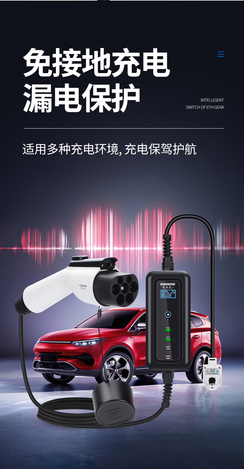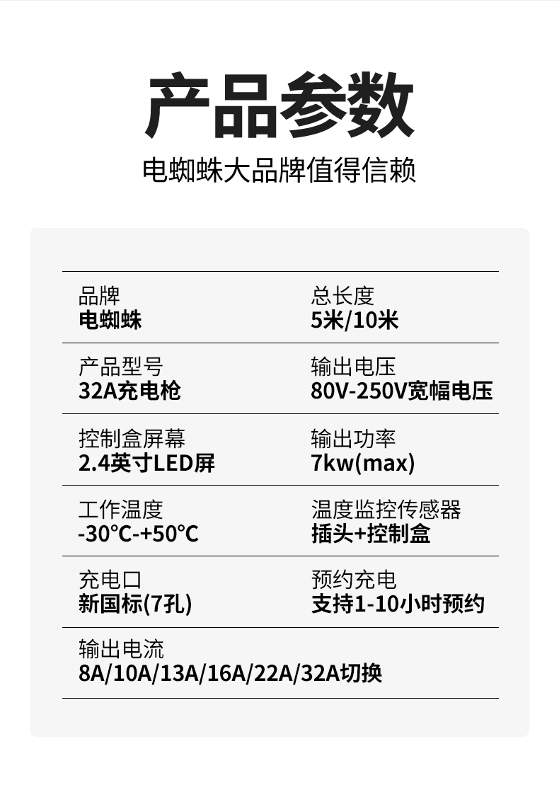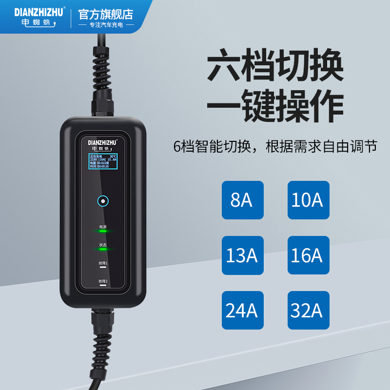 電流四檔調節,電壓不足220V也能正常充電,家用電線達不到2.5平方也可以充電,預約充電,避開高峰其充電更省錢,